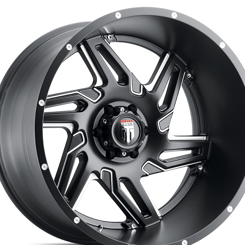 1 X AMERICAN TRUXX SPURS 24X14 5-150 110.3 Hub -76 Offset Black Wheel Rim