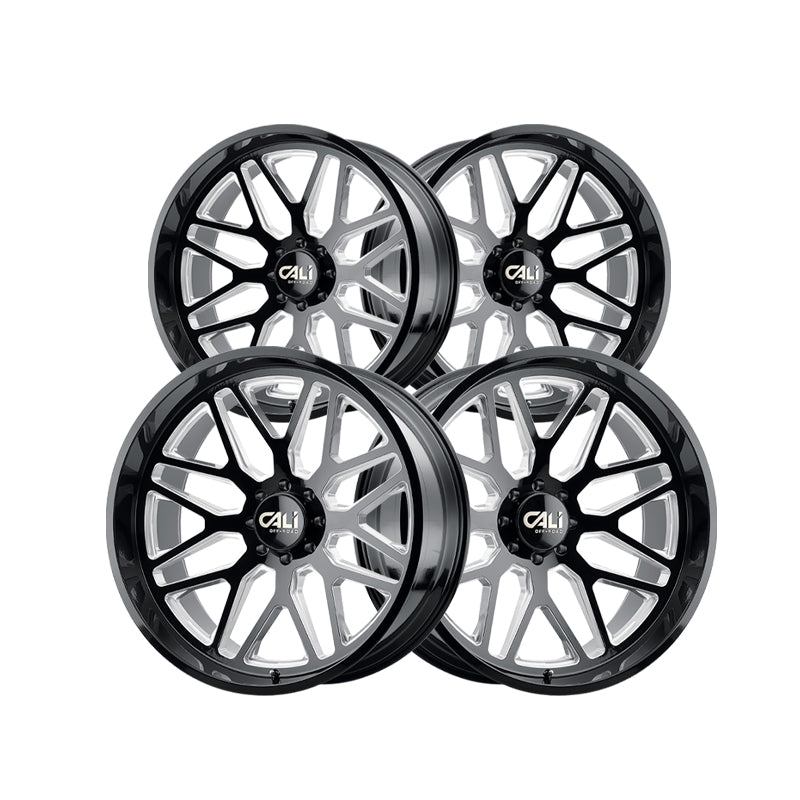 1 X CALI OFF-ROAD INVADER 24X14 6x139.7 106.1 Hub -76 Offset Gloss Black/Milled Spokes Wheel Rim