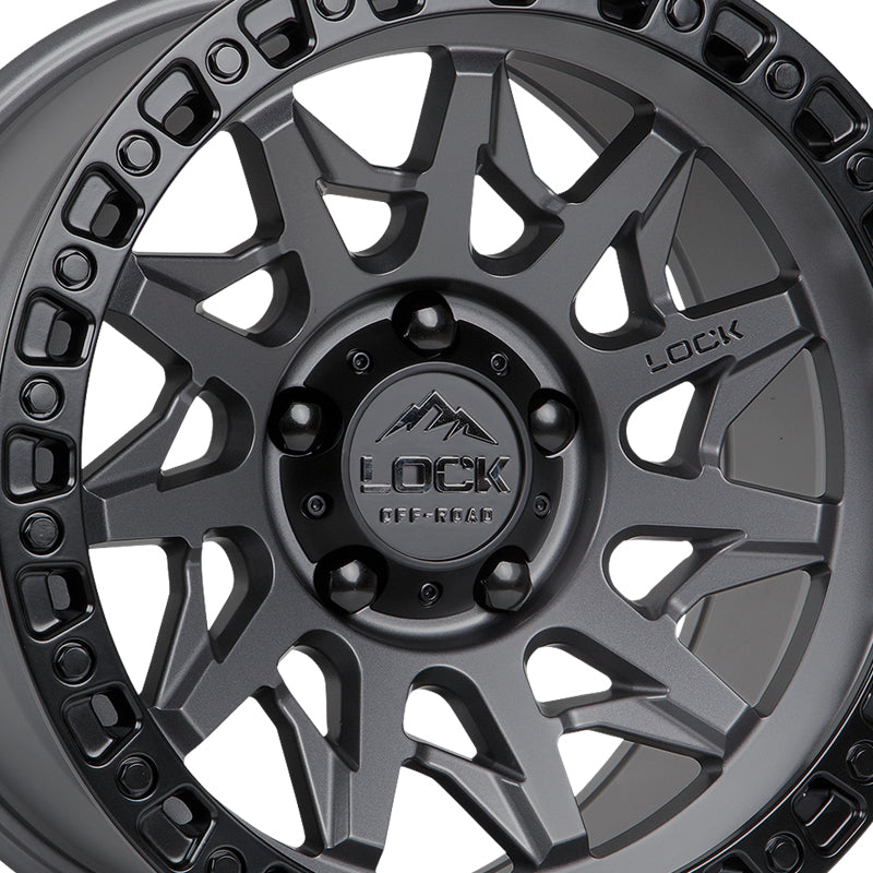 1 X Lock Off Road Lunatic 20x10 8x170 125.2 Hub 4.79 Offset Matte Grey W Matte Black Ring Wheel Rim
