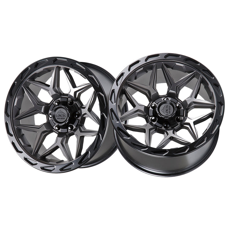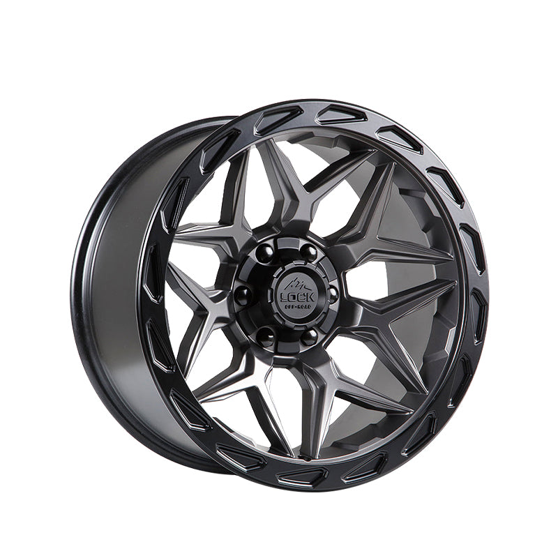 1 X Lock Off Road Matrix 22x10 5x127/5x139.7 87.1 Hub 4.79 Offset Matte Grey W Matte Black Ring Wheel Rim