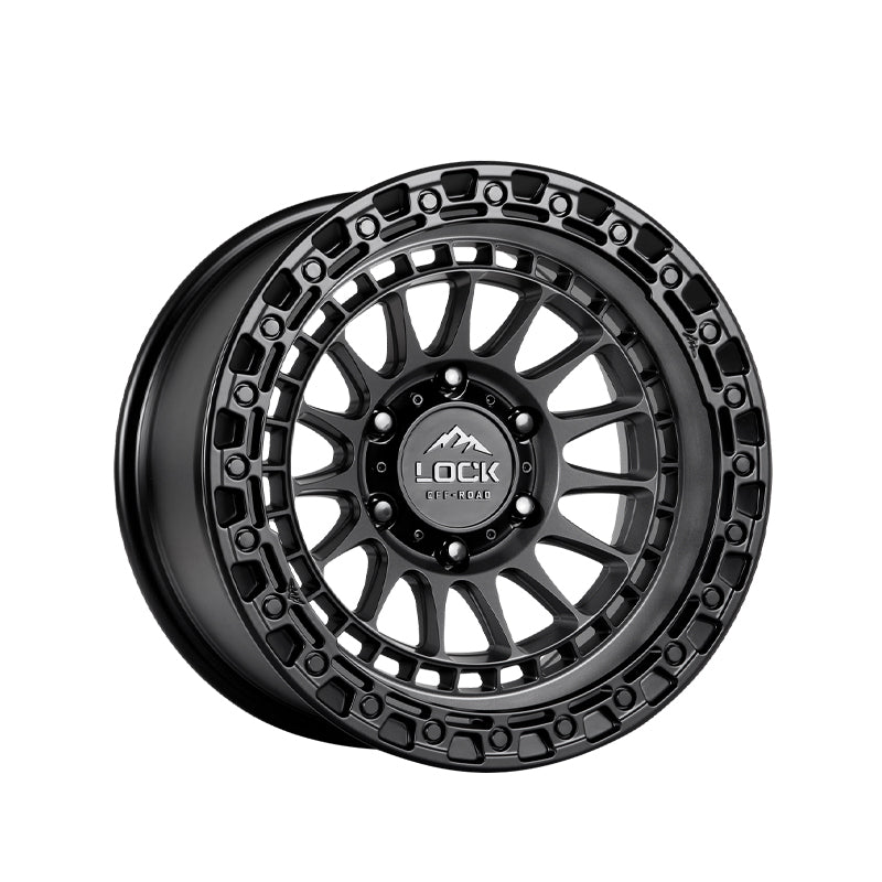 1 X Lock Off Road Mojave 17X8.5 6X135 87.1 Hub 5.73425196850394 Offset Matte Grey W Matte Black Ring Wheel Rim