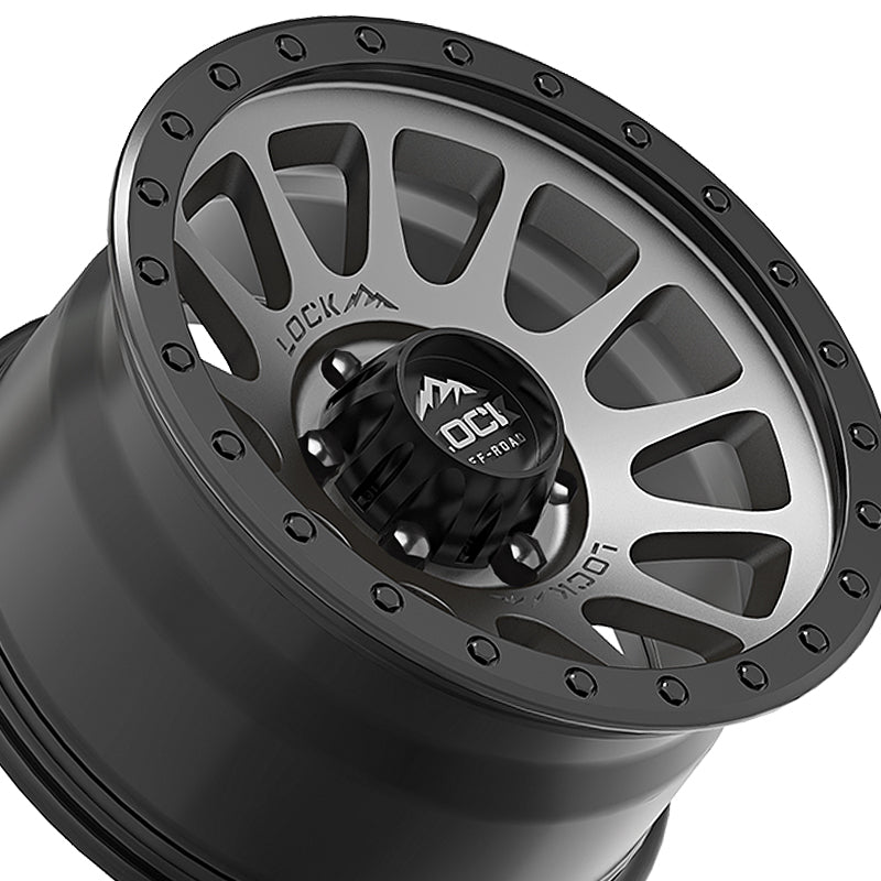 1 X Lock Off Road Yosemite 20x10 5x127 71.5 Hub 4.79 Offset Matte Grey W Matte Black Ring Wheel Rim