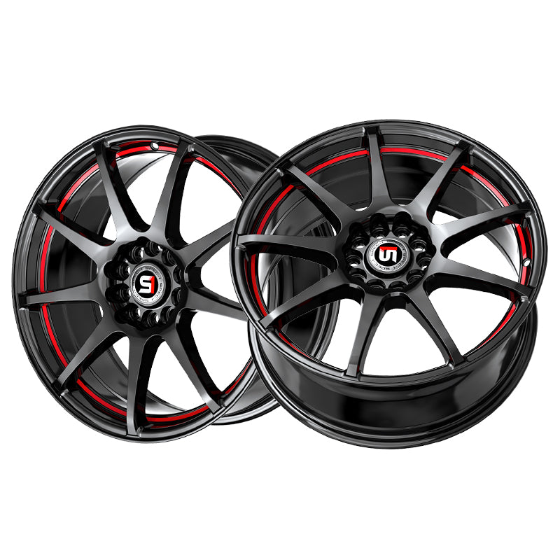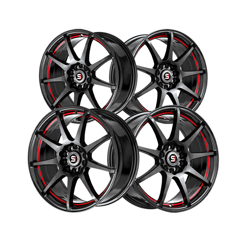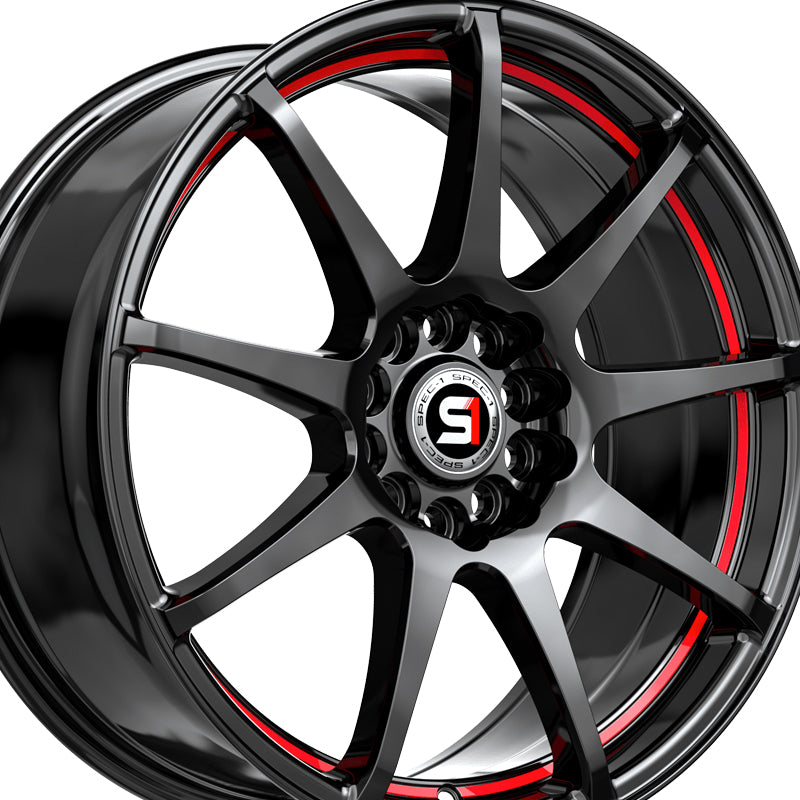 Spec-1 SP-67 Gloss Black & Red Line18x8