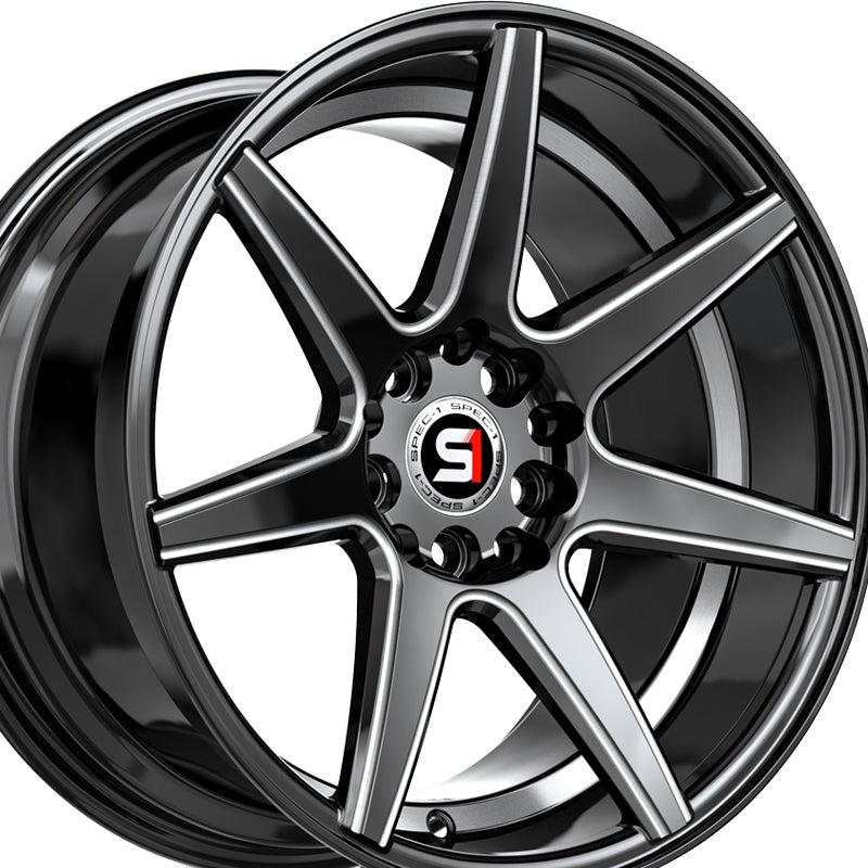 1 X Spec-1 SP-73 Gloss Black Milled & Undercut 18X8 4x100/4x114.3 73.1 Hub 38 Offset Black Wheel Rim