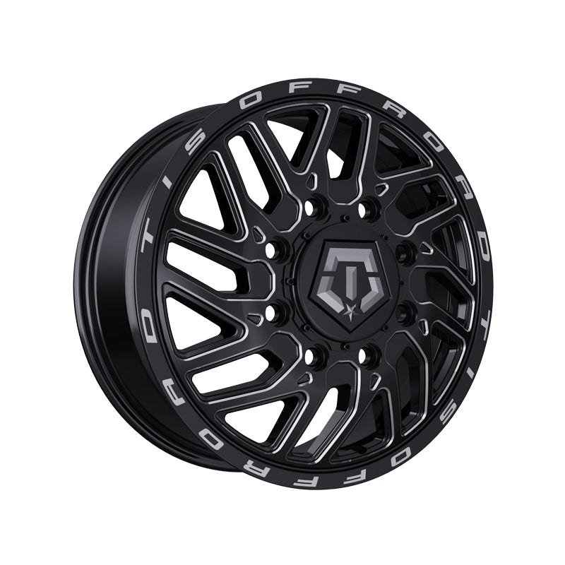 1 X TIS 544BM Dually 17X6.5 8X6.50 121.7 Hub +129 Offset Gloss Black w/Milled Accents Wheel Rim