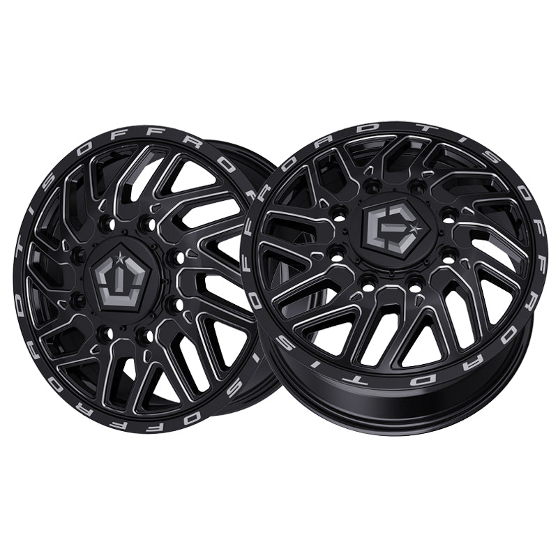 1 X TIS 544BM Dually 20X8.25 8X200 142 Hub +127 Offset Gloss Black w/Milled Accents Wheel Rim
