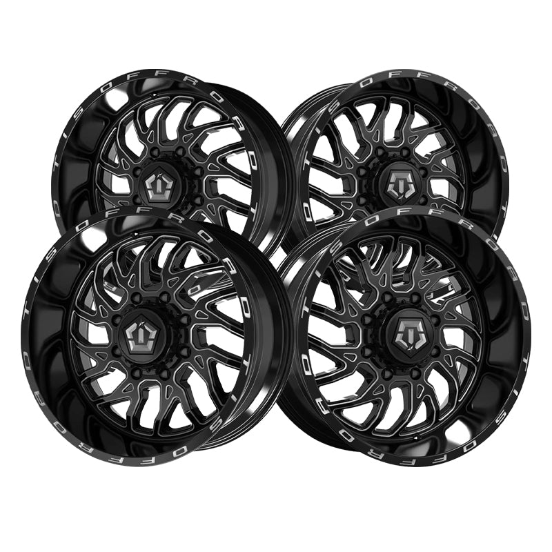 1 X TIS 544BM Dually 20X8.25 8X210 154.3 Hub -198 Offset Gloss Black w/Milled Accents Wheel Rim