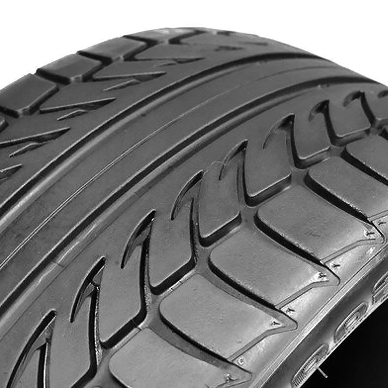 The BFGoodrich G-Force Sport Comp-2 is an ultra-high-performance summer tire for sporty passenger vehicles. This model has great dry and wet traction and is constructed to enable enhanced acceleration, cornering and braking in such conditions. While this tire is not meant for colder temperatures, it grips the road well in dry and wet situations, and the tread pattern, with the shoulder and circumferential grooves, resists hydroplaning in deep water. The G-Hook technology also gives additional biting edges to the tire for cornering, braking and maneuvering, providing a safer driving experience. The tire was manufactured using BFGoodrich's motorsport-inspired technologies. The Performance Racing Core internal structure with the ETEC (Equal TEnsion Containment) system optimizes the tread's road contact area for more precise, high speed control over the tire. This, along with the stiff sidewall structure, improves its cornering ability, power and directional driving stability. The directional tread pattern and the stabilized tread blocks on the shoulders improve the feedback between the tire and the road. This model's COMP-2 silica-enhanced compound, also developed from racing technology, boosts the steering precision and response. This makes the tire's handling more precise and its controllability superb.