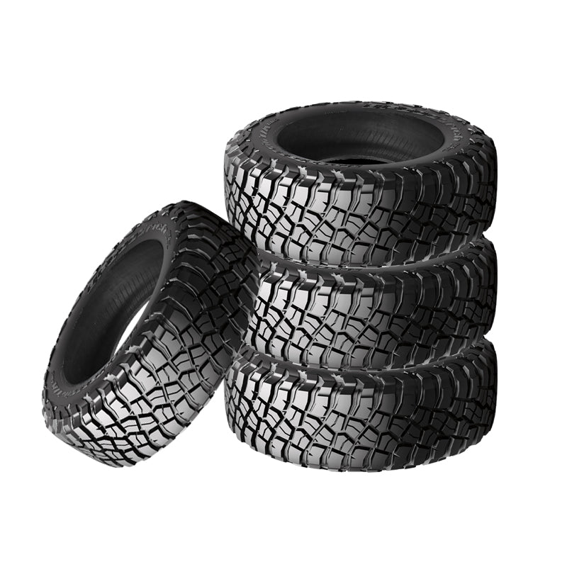 The BFGoodrich Mud-Terrain T/A KM3 is a mud terrain all season tire manufactured for light trucks. The tire ensures excellent off-road performance. The Terrain-Attack tread design’s large tread blocks improve the soft and loose terrain traction and also enable the model to maintain a firm grip on uneven terrain surfaces. In this manner, the tread enhances the tire’s usability on all off-road conditions. The staggered shoulder design increases the tire’s forward movement in deep mud and loose dirt, promoting better controllability. The tread pattern’s wide grooves feature Mud-Phobic bars that manage to keep the tire’s footprint clean. They eliminate mud and snow and eject rocks stuck between the tread elements. This resists stone retention from harming the tire and prevents the tread area from being blocked from its contact with the road surface.