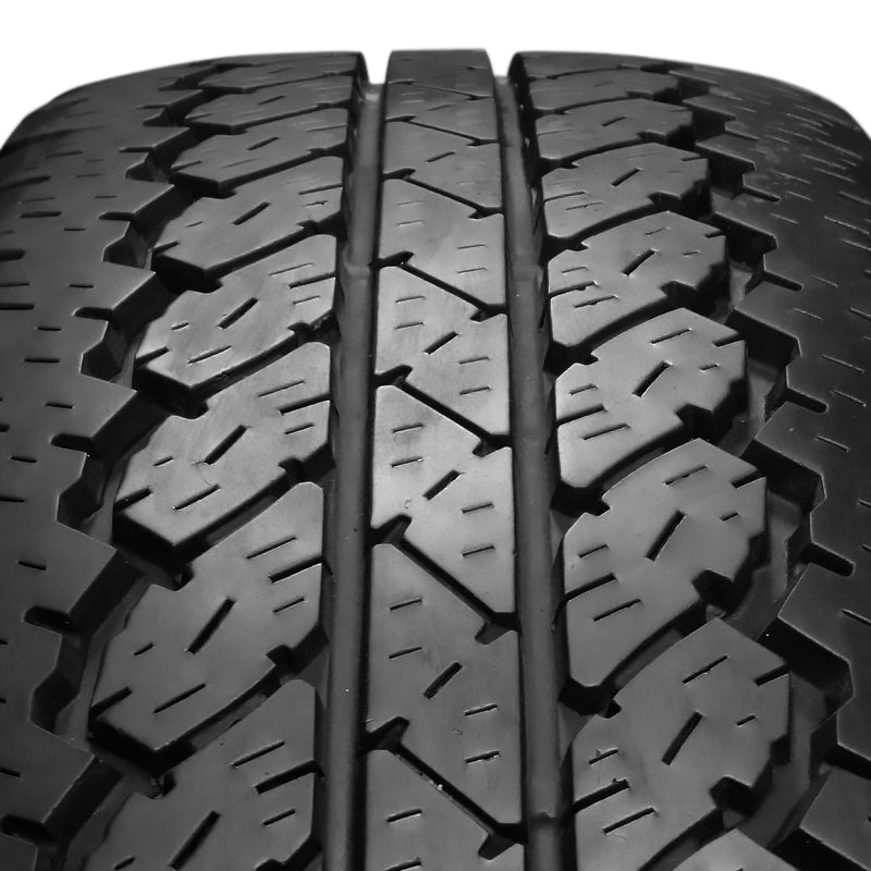 The Bridgestone Dueler A/T RH-S is an all season all terrain tire manufactured for SUV, crossover and light truck vehicles. This model offers excellent all terrain traction. The off-shoulder tread design helps the tire grip the road surface more firmly on all surface conditions. The tire’s all terrain capability is enhanced this way, as it can conquer all uneven, loose or soft terrains. While most all terrain tires are not recommended for use in mud, this model can perform well. It is worth noting, however, that prolonged use on muddy terrain can become dangerous, as the mud packs up in the tread grooves, lowering the model’s grip. This tire is perfect for drivers with diverse needs. It performs well in both on- and -off-road conditions as well, such as dirt or gravel paths.