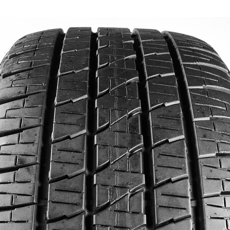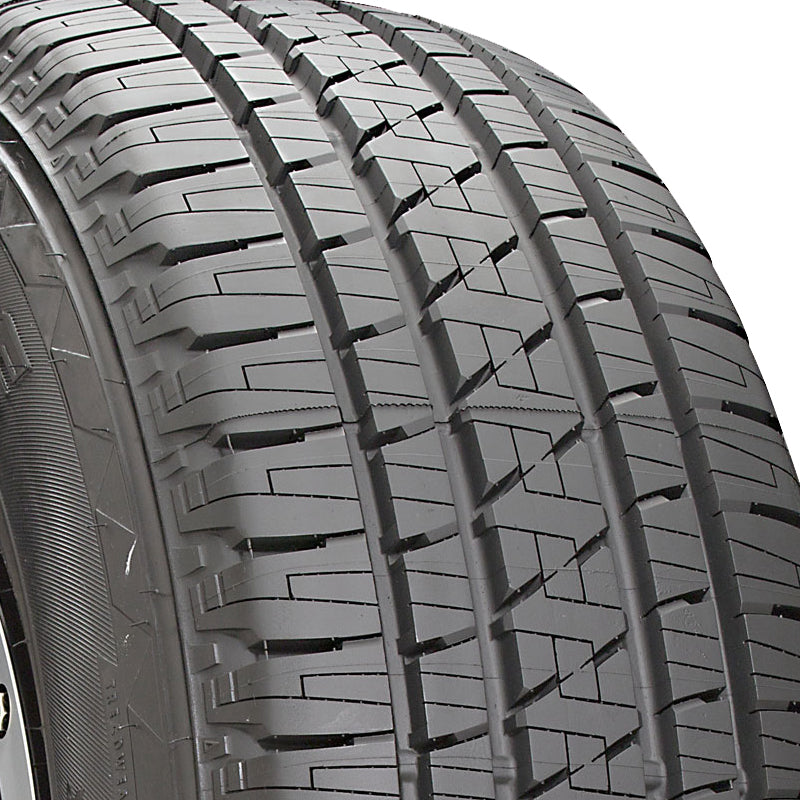 The Bridgestone Dueler H/L Alenza Plus is an all-season touring tire manufactured for SUV and crossover vehicles. Bridgestone offers 55,000-mile tread wear warranty with W speed rated sizes and an 80,000-mile tread wear warranty with T, H and V speed rated sizes of this model. The tire's polymer tread slows the tread wear rate down. The reinforced tread wears out slower, while the equally distributed force of acceleration, braking and cornering prevents irregular wear on the tire. These two factors together enhance the tire's tread life, extending its usability. This makes the tire more cost efficient. The lower rolling resistance of the tire further slows the tread wear down, while making the tire more environmentally friendly. The lessened rolling resistance reduces the fuel consumption and CO2 emissions of the vehicle, so that the tire is both economically and ecologically friendly. The tire's excellent steering responsiveness is the result of the constantly maintained road contact, made possible by the continuous center rib of the tread pattern. This is further improved with the reinforced sidewalls of the model offering greater stability. The tire keeps its shape under the driving pressure improving its safety. The more precise and swift steering precision enables the driver to react quicker and more confidently to the differing road conditions, making the tire safer. This model has great all-weather traction, including in light winter weather. It grips the road well in dry, wet and winter conditions and it makes wet weather driving safer. The tread grooves help resist hydroplaning in dangerous situations by eliminating water from below the tire footprint. The Dueler H/L Alenza Plus offers a quiet and comfortable driving experience as the optimized tread pattern design and sidewall configuration reduce the road noise and vibration levels. The road noise is lowered as the air waves are channeled through the tread, while the tire absorbs the shock of driving, lessening the vibrations felt in the cabin of the vehicle.