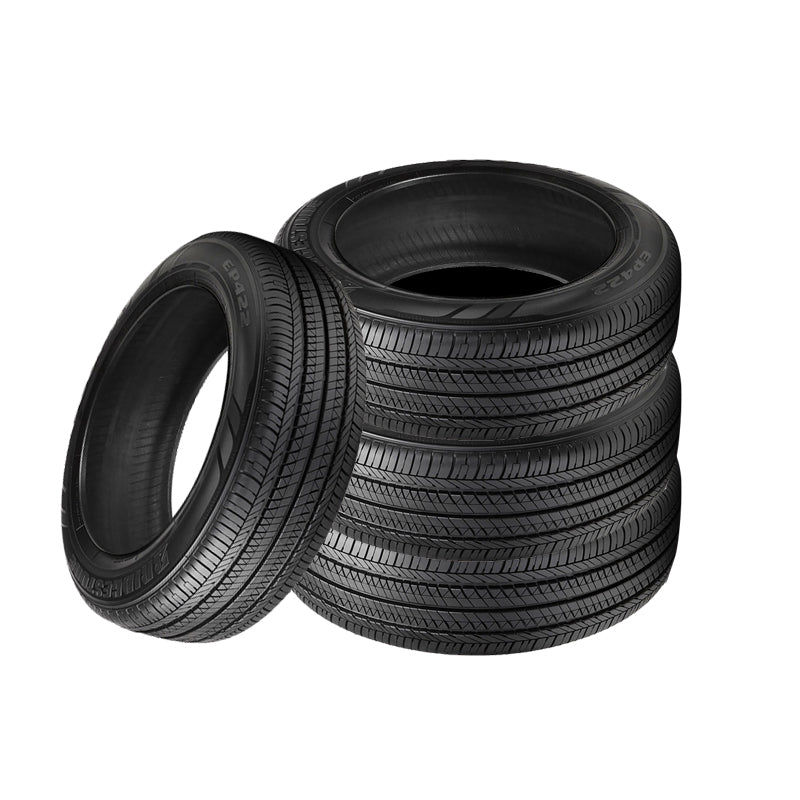 The Bridgestone Ecopia EP422 is an all-season touring tire made for passenger vehicles. The manufacturer offers a 65,000-mile warranty with this tire model. The tire compound and the tread pattern offer excellent all-weather traction and the tire grips the road well in dry, wet and even in light winter conditions. The tread design also makes the tire safer to use in wet weather conditions, as the wide circumferential grooves help eliminate water from below the tire footprint, effectively resisting hydroplaning. The tire is safer to use all year thanks to these features. The tire's lighter weight and better road gripping ability reduce the rolling resistance of the tire. The rolling resistance is further decreased with the NanoPro-Tech tire compound, which is a trademark of Bridgestone's Ecopia models. The lessened rolling resistance is the result of the combination of the compound and the tire's lighter weight which provide better fuel economy. The fuel consumption and the CO2 emissions of the vehicle are lowered, making the tire environmentally friendly and economic for the driver. The reinforced tire compound and the tire's strengthened internal construction enhance the tire's tread life. The tire is resistant to accidental punctures and other damages, such as chipping, cracking and tearing. The driving pressure is also equally distributed along the tread area, which prevents uneven wear. The longer lasting tread life makes the tire more cost-efficient. The Ecopia EP422 maintains its shape even during high speed driving. The tire does not deform under the driving pressure. Its maintained shape and its superb high-speed stability are the result of the spiral warp reinforced structure of the model.