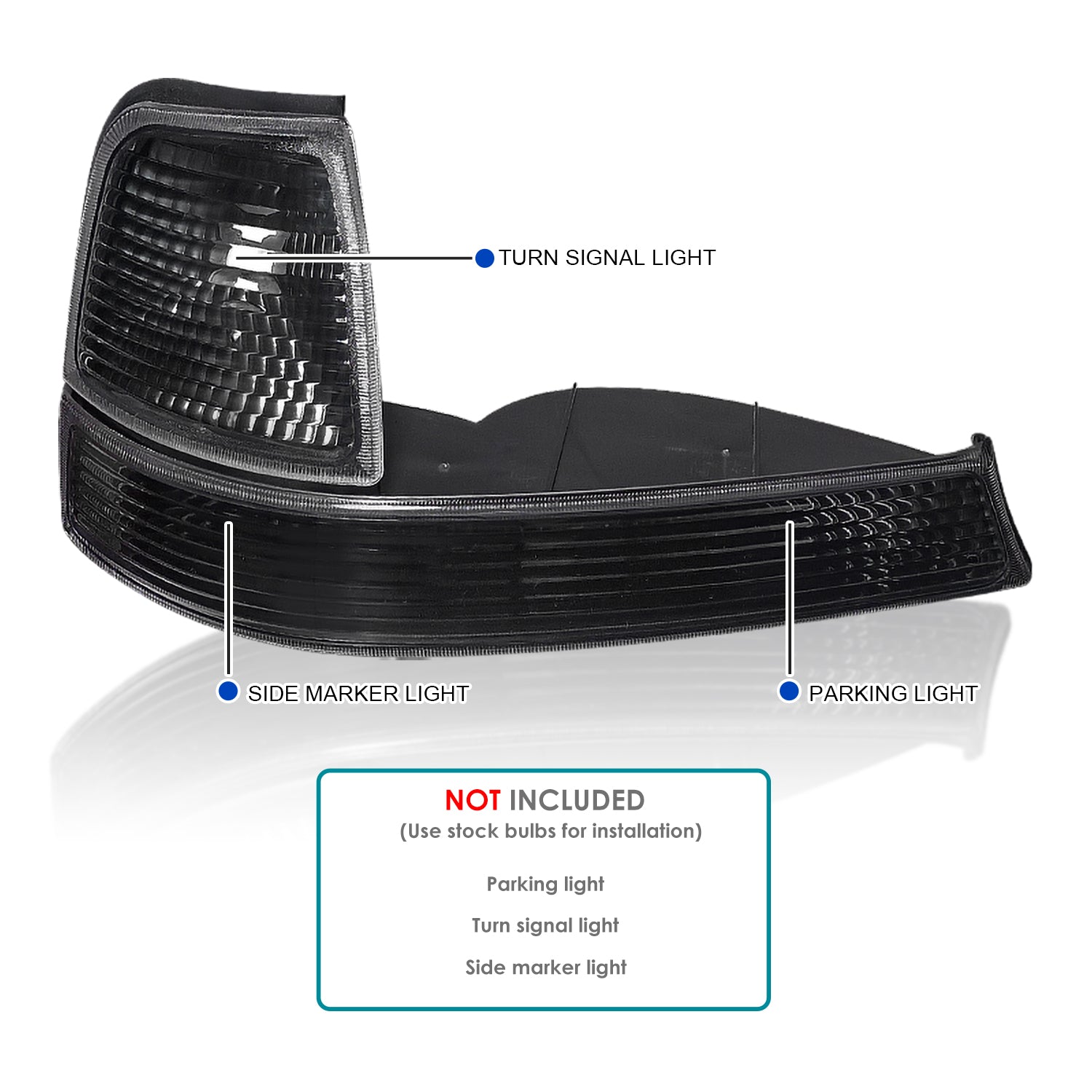 Coolstuffguru Black Headlights Headlamps+Corner Turn Signal Bumper Lamps Compatible with Ford Ranger 1998-2000 L+R Pair Assembly