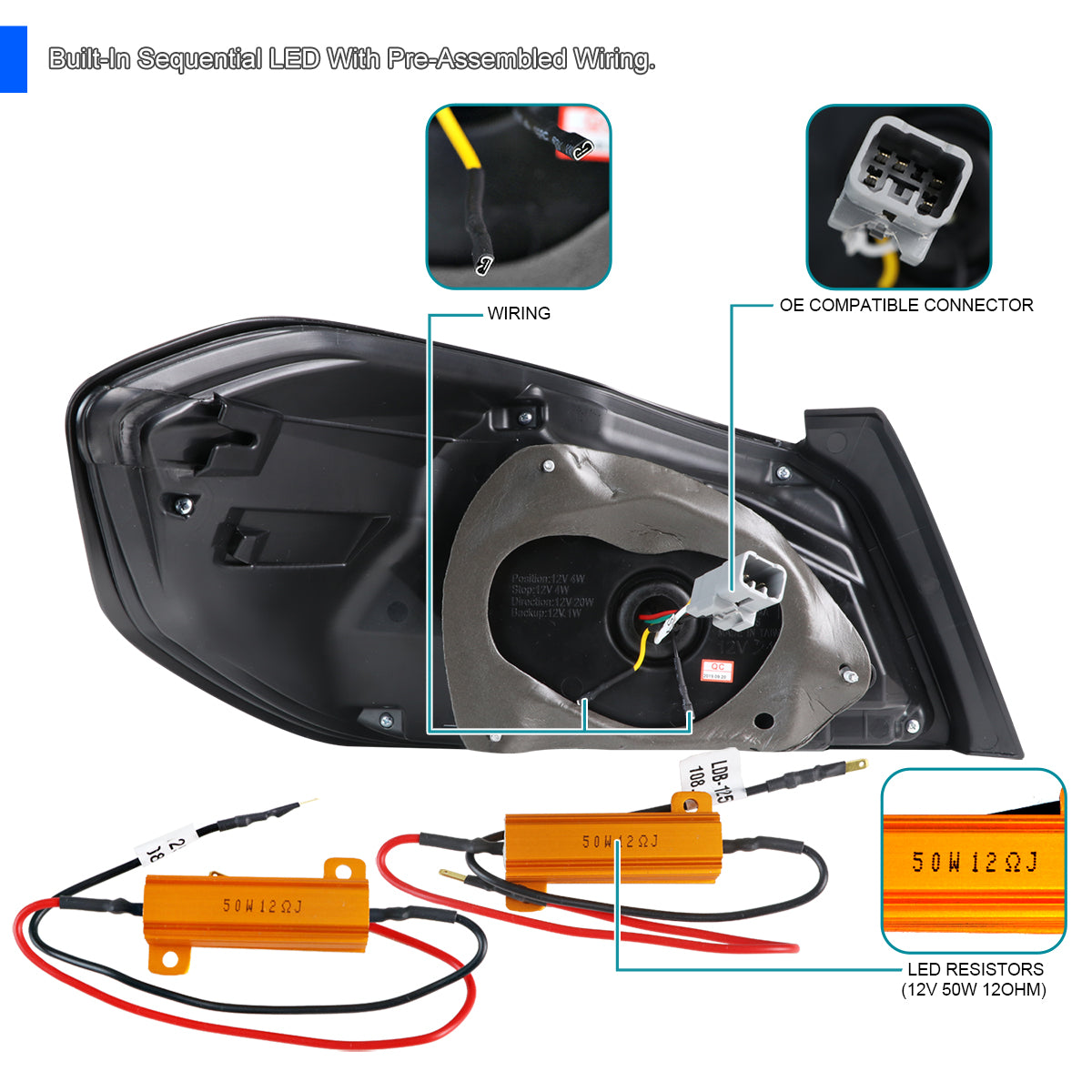 100% brand new in original packaging. Comes with both tail lights w/ LED day time running & sequential signal lights. High quality black housing clear lens. Made of ABS Plastic, durable and long service life. Enhance Visibility During Night Time, Heavy Rain, Snow, or Dense Fog. Made by an ISO certified manufacturer with quality that meets strict OE standards. In order to install right and work properly, professional installation is needed.