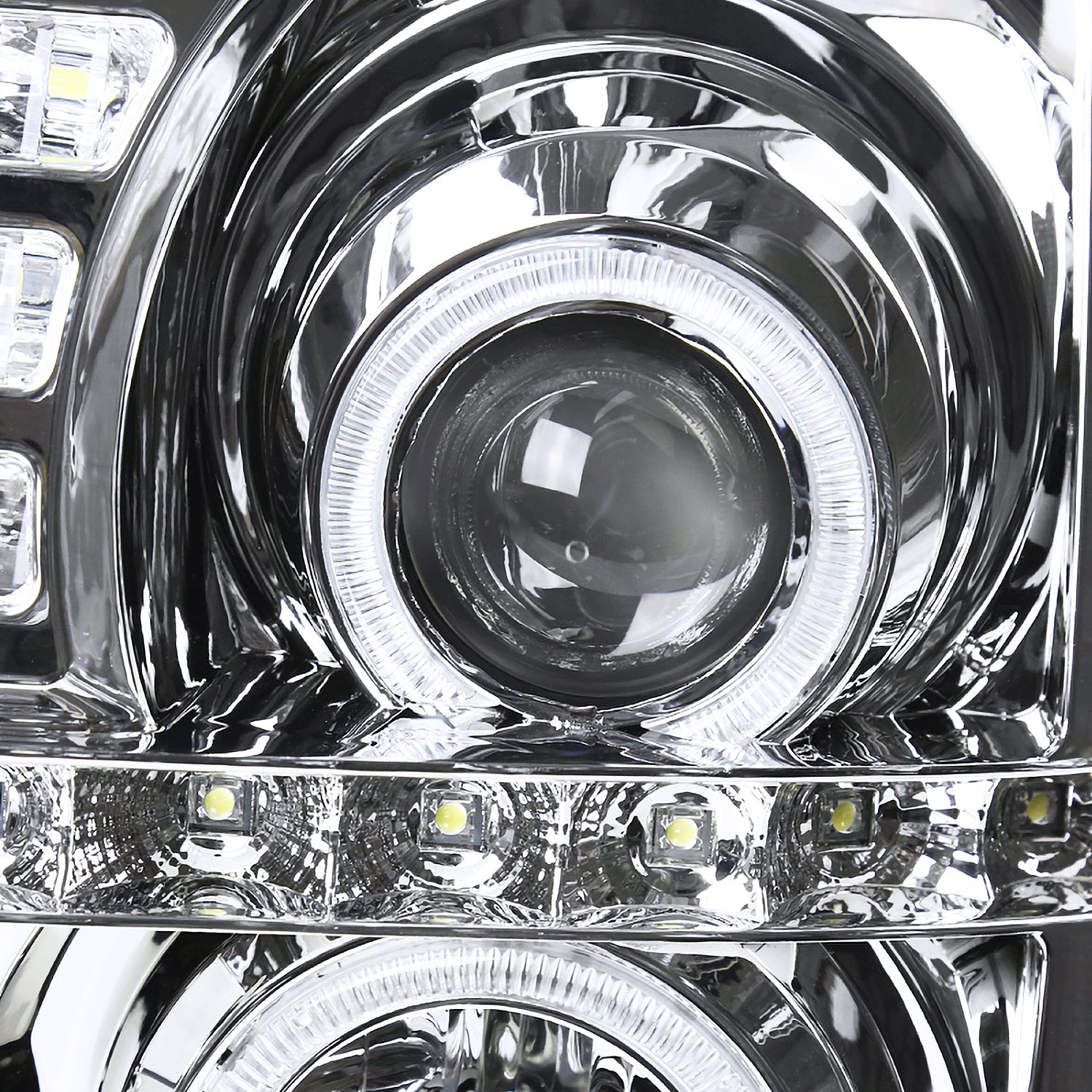 Coolstuffguru CHROME MESH HOOD GRILLE+LED HALO HEADLIGHTS Compatible with 2002-2006 ESCALADE