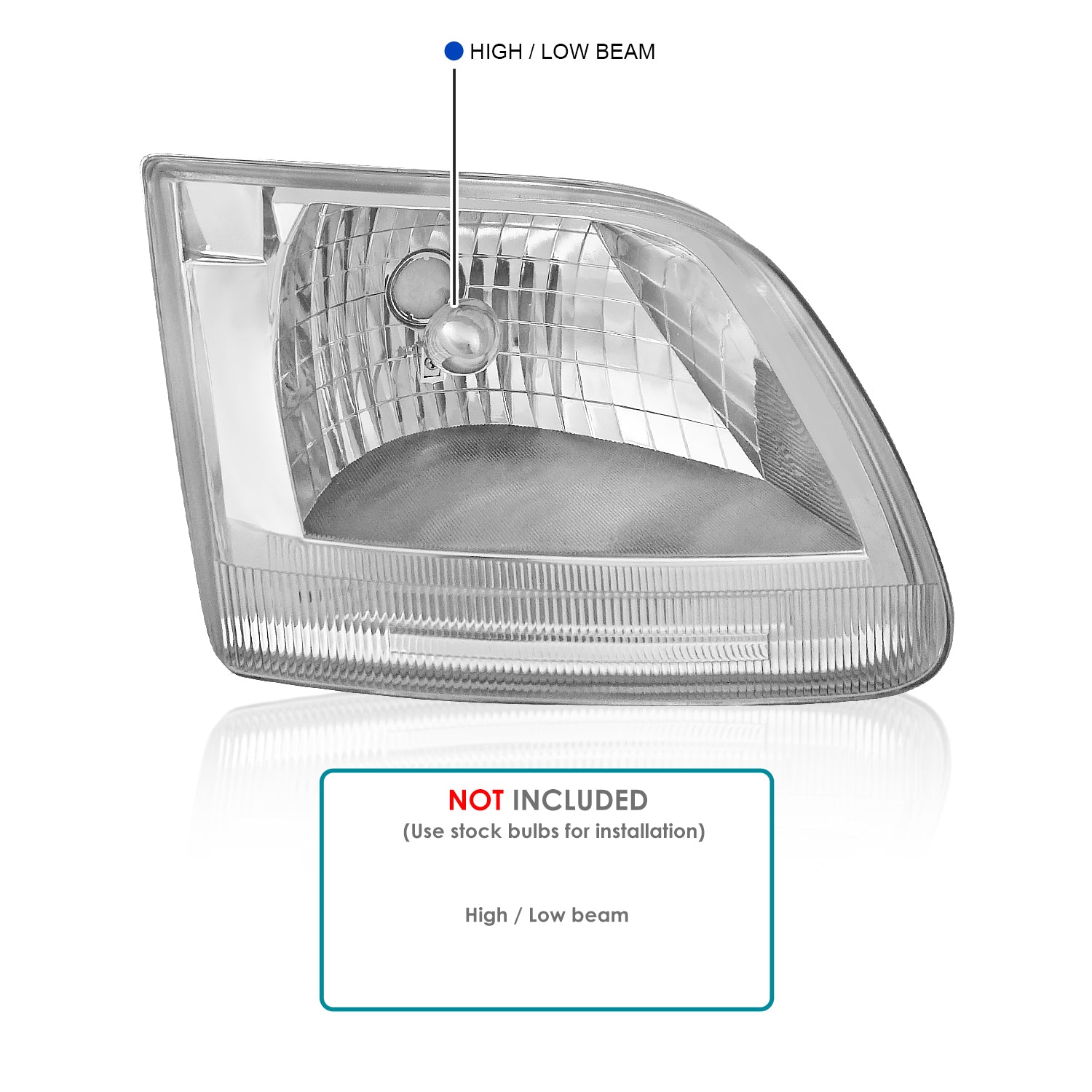 Coolstuffguru Compatible with 97-03 Ford F150 97-02 Expedition Chrome Clear Headlights+Corner Lamp