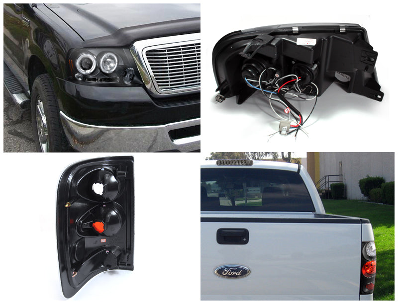 Coolstuffguru Compatible with BLACK 04-08 F150 HALO PROJECTOR HEADLIGHTS+TAIL LAMPS+SMOKE LED 3RD BRAKE LI