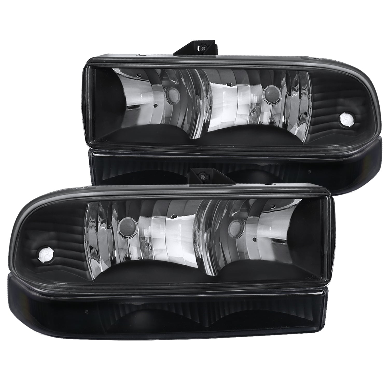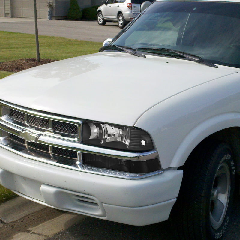 Coolstuffguru Compatible with Chevy S10 Blazer Pickup Black Crystal Headlights+Clear Bumper Corner Lamps