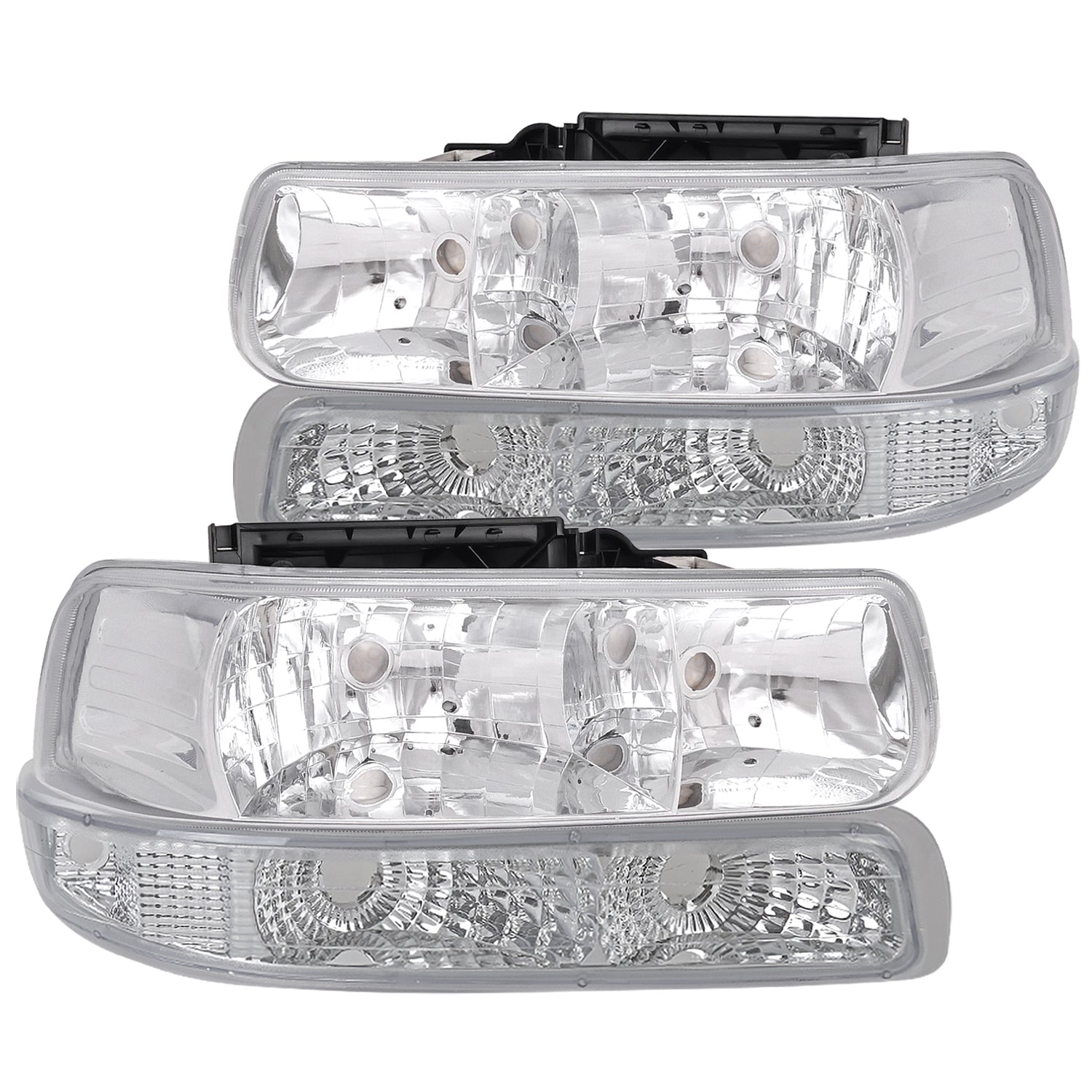 Coolstuffguru Compatible with Chevy Silverado Tahoe Suburban Euro Headlights+Bumper Signal Corner Lamps