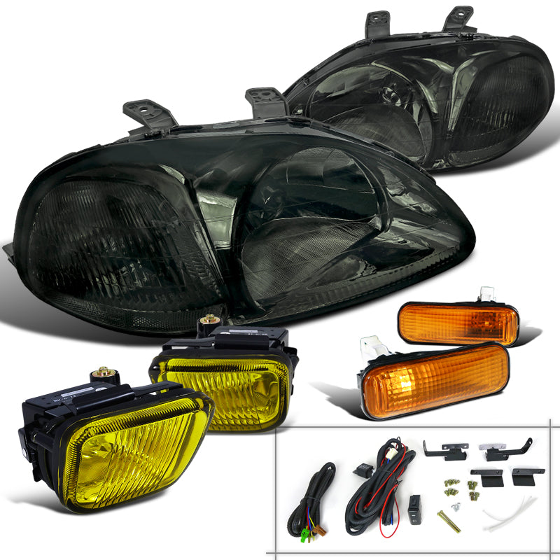 Coolstuffguru Compatible with Civic Smoke Headlights+Yellow Bumper Fog Lights+Amber Side Markers
