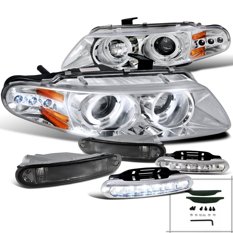 Coolstuffguru Compatible with Dodge Avenger Sebring Projector Chrome Headlights+Smoke Bumper+LED DRL Fog L