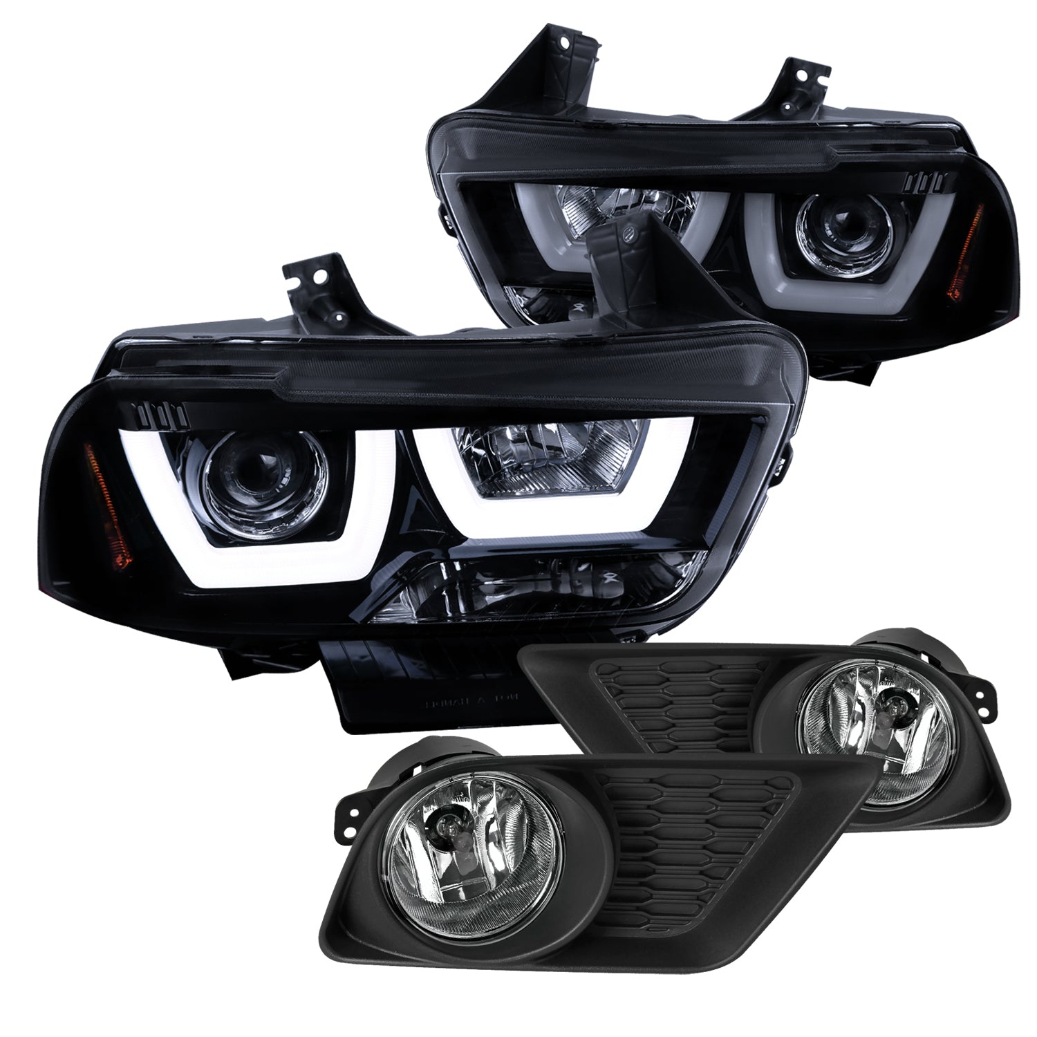 Coolstuffguru Compatible with Dodge Charger Glossy Black Dual Halo Projector Headlights+Clear Bumper Fog L
