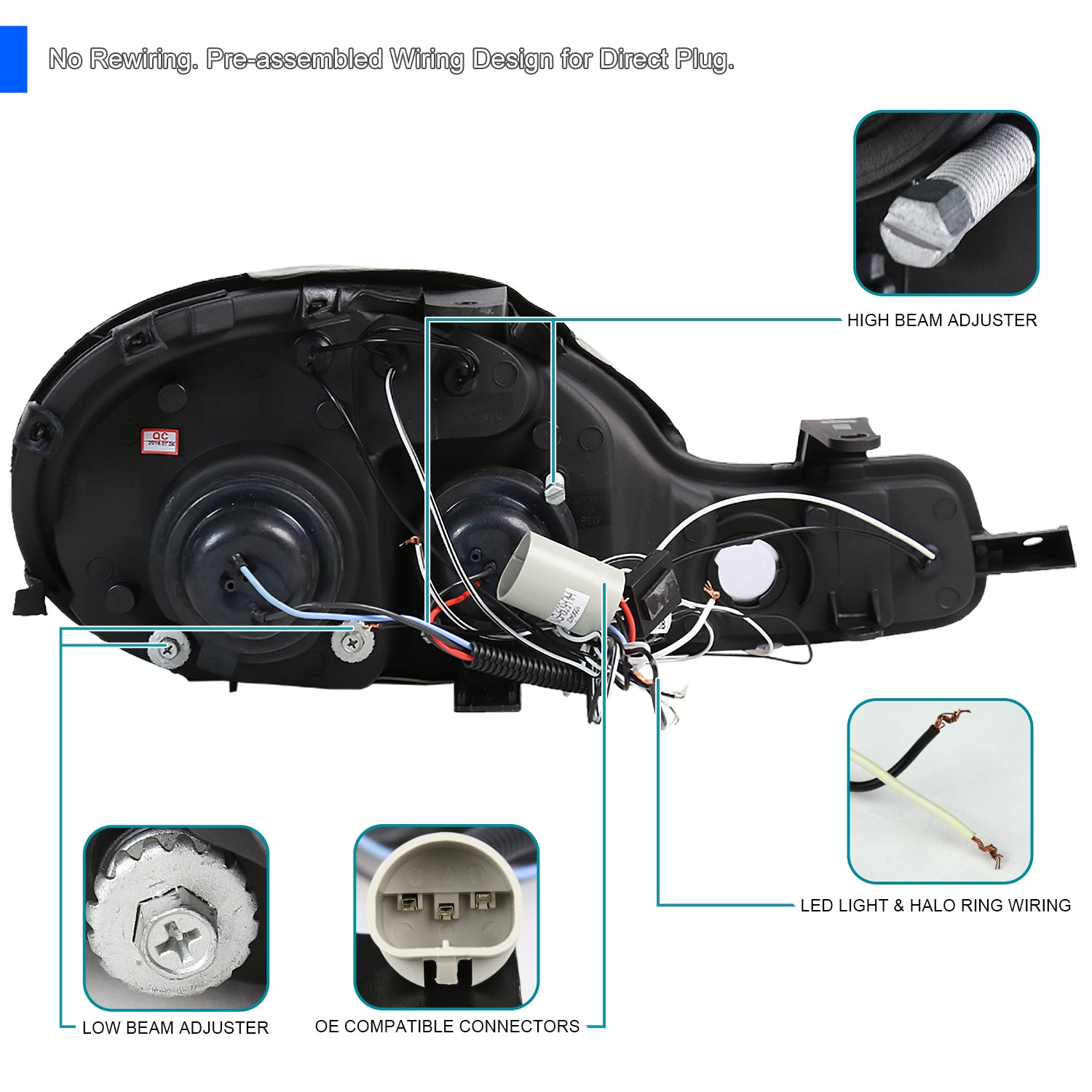 Coolstuffguru Compatible with Dodge Neon Plymouth Es Acr Rt Glossy Black Halo Led Projector Headlights