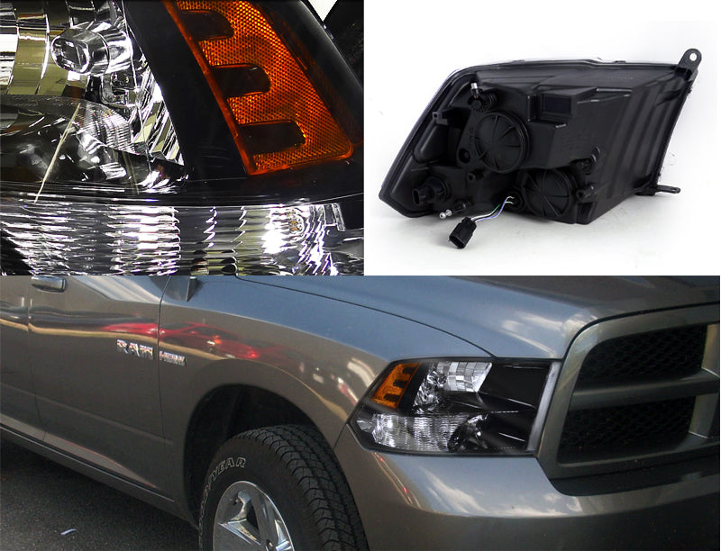 Coolstuffguru Compatible with Dodge Ram 1500 2500 3500 Black Housing Headlights Amber Reflector