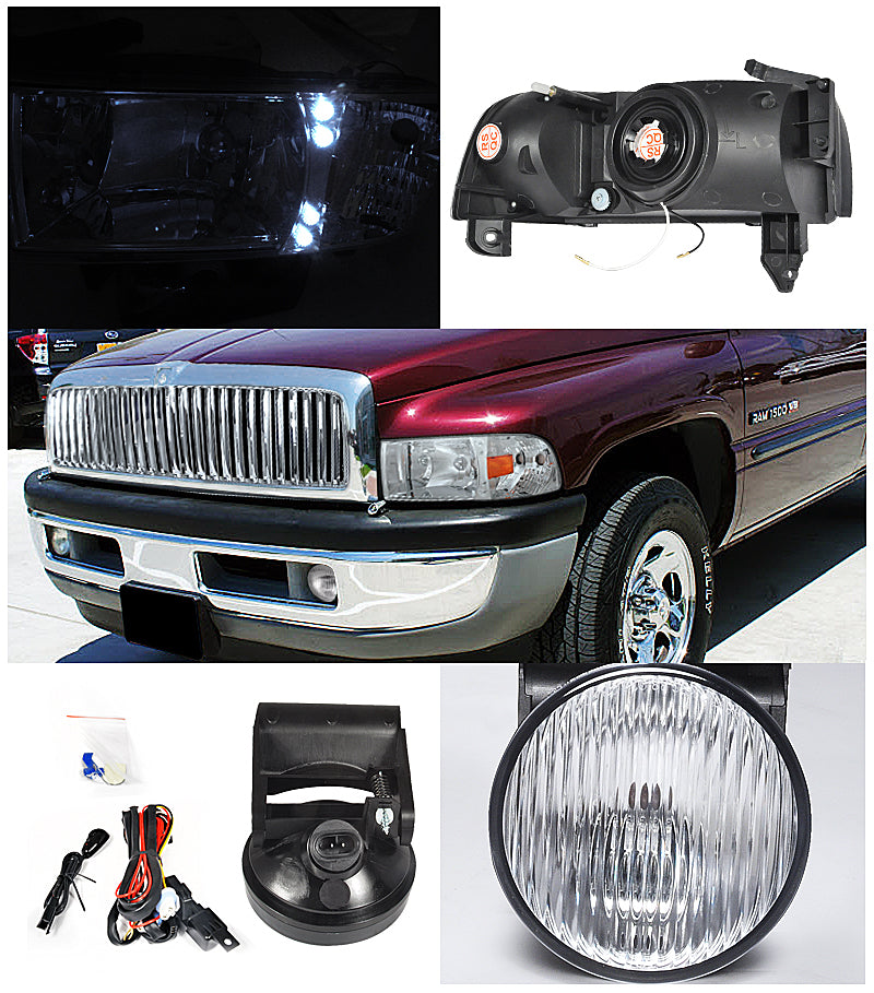 Coolstuffguru Compatible with Dodge Ram 1500 2500 3500 Chrome Headlights, Fog Lights, Chrome Vertical Gril