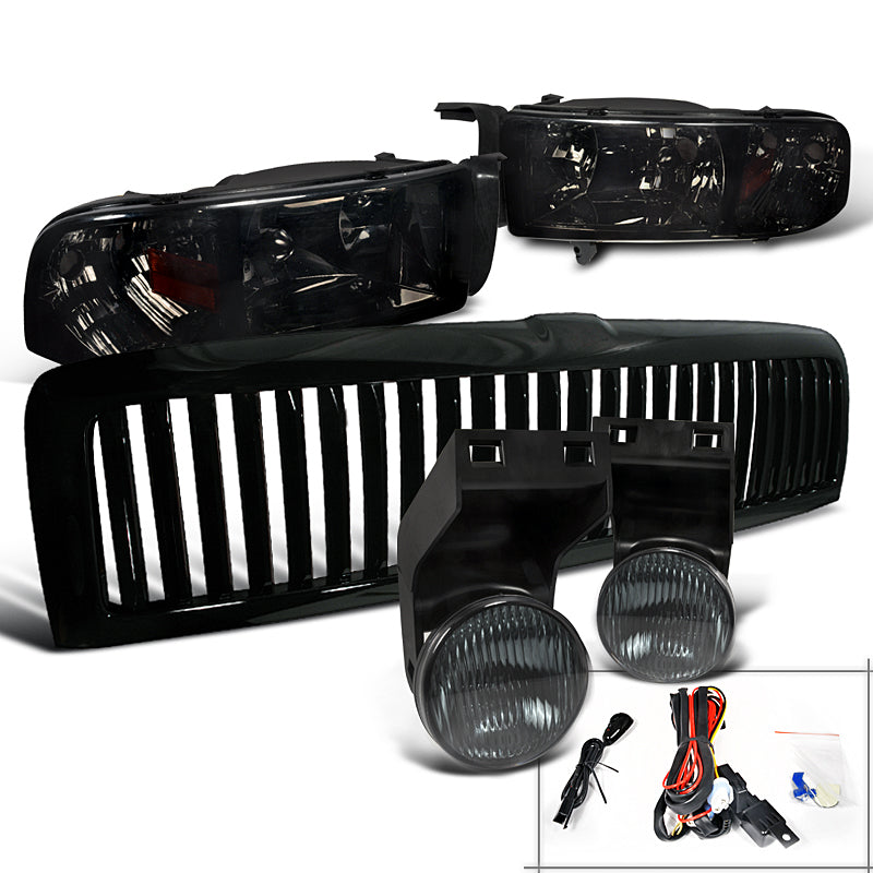Coolstuffguru Compatible with Dodge Ram 1500/2500/3500 Smoke Headlights+Fog Lamps+Black Vertical Grill