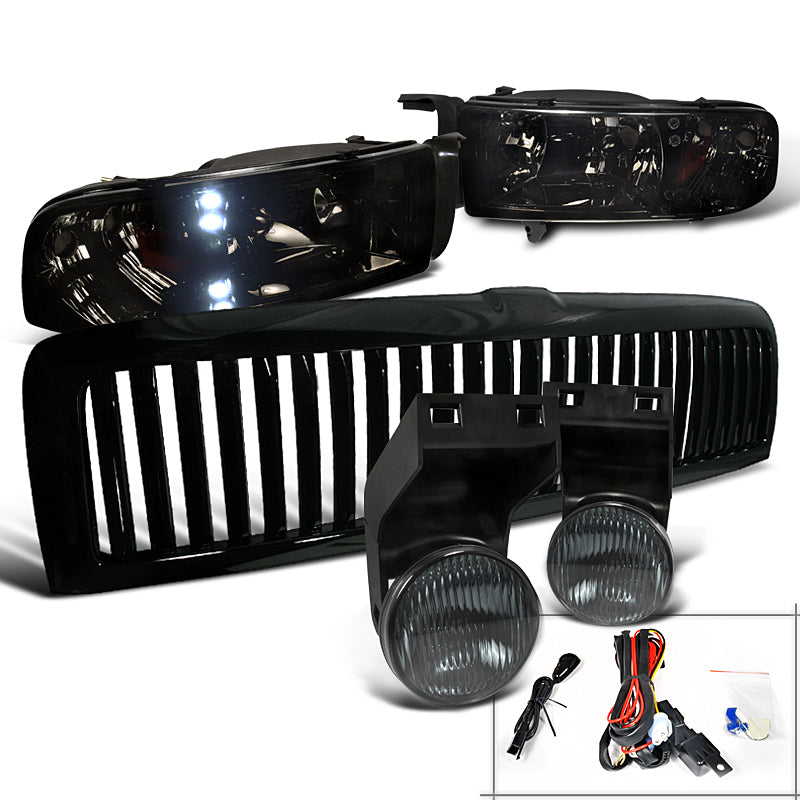 Coolstuffguru Compatible with Dodge Ram 1500/2500/3500 Smoke LED Headlights+Fog Lamps+Black Vertical Grill