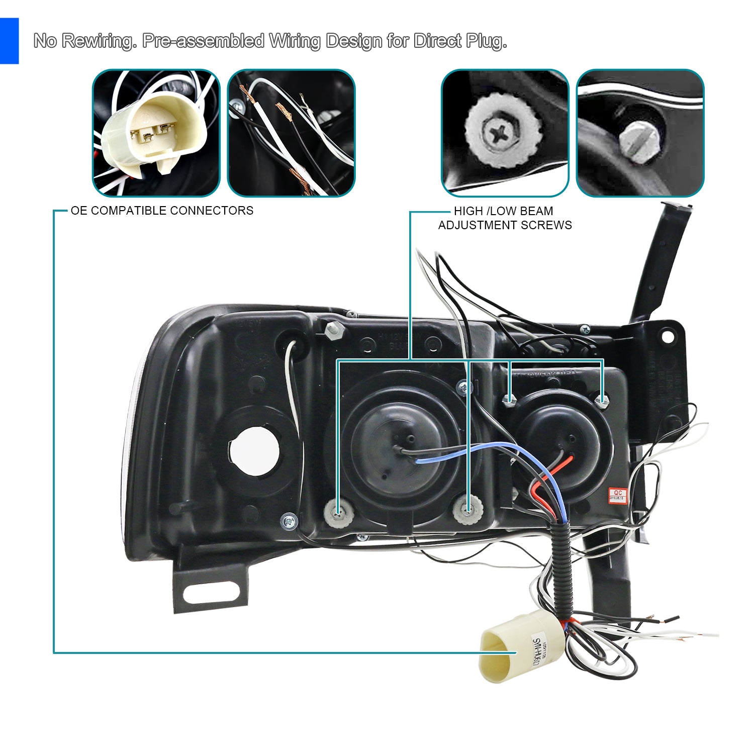 Coolstuffguru Compatible with Dodge Ram 1500 2500 Smoke Lens Glossy Black Halo Projector Head Lights