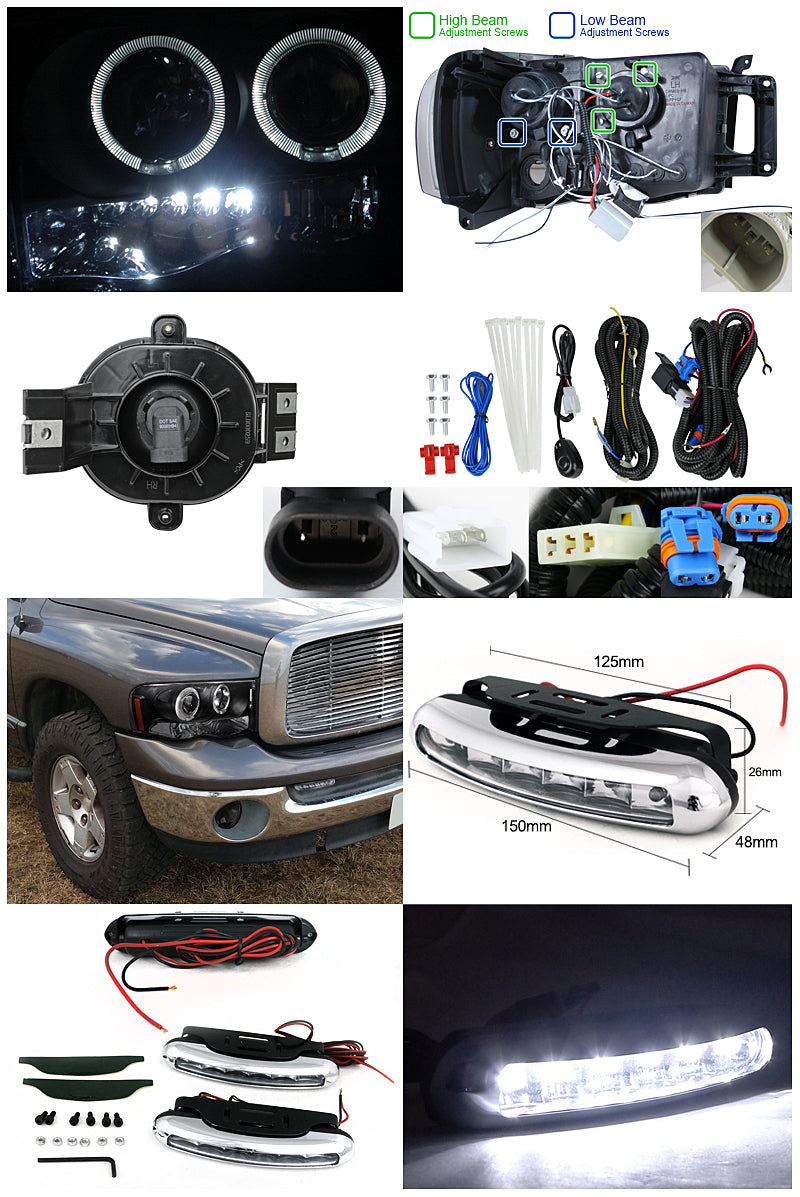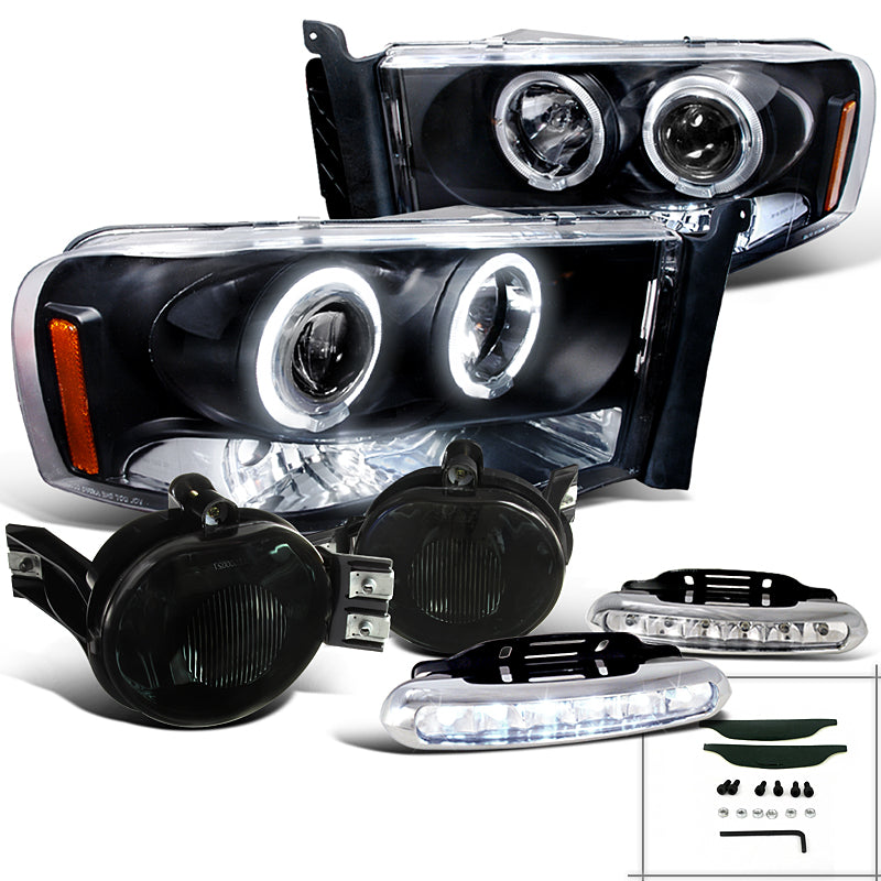 Coolstuffguru Compatible with Dodge Ram 1500 Projector Black Headlights+Smoke Fog Lamps+DRL LED Bumper Lig