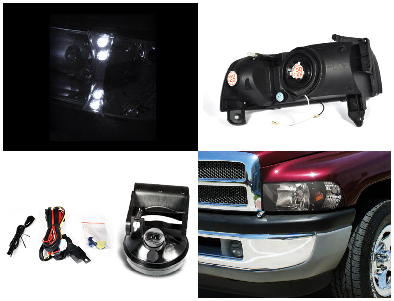 Coolstuffguru Compatible with DODGE RAM 94-01 BLK LED HEAD LIGHTS+SMOKE FOG LAMP KIT