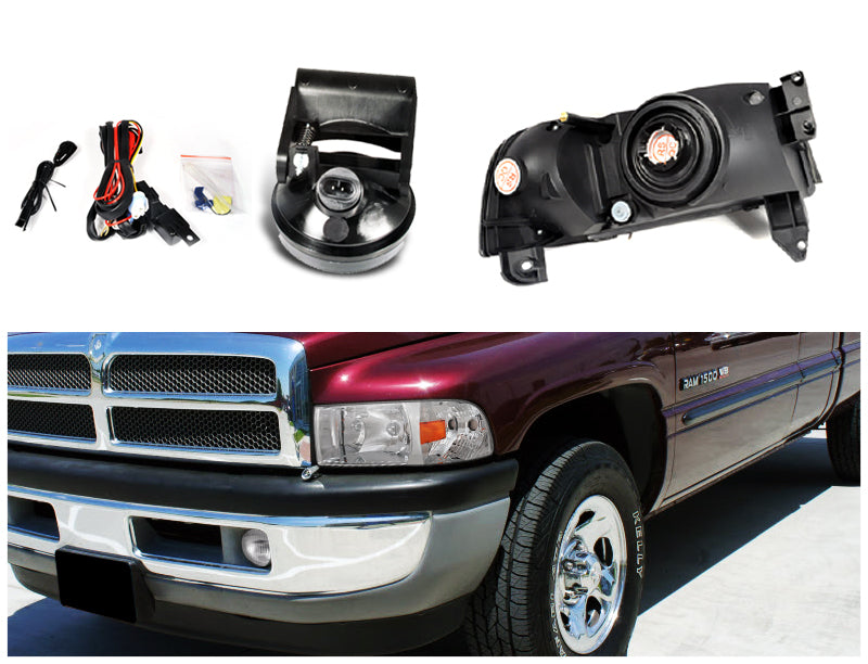 Coolstuffguru Compatible with DODGE RAM 94-01 CHROME EURO HEAD LIGHTS CORNER+FOG LAMP