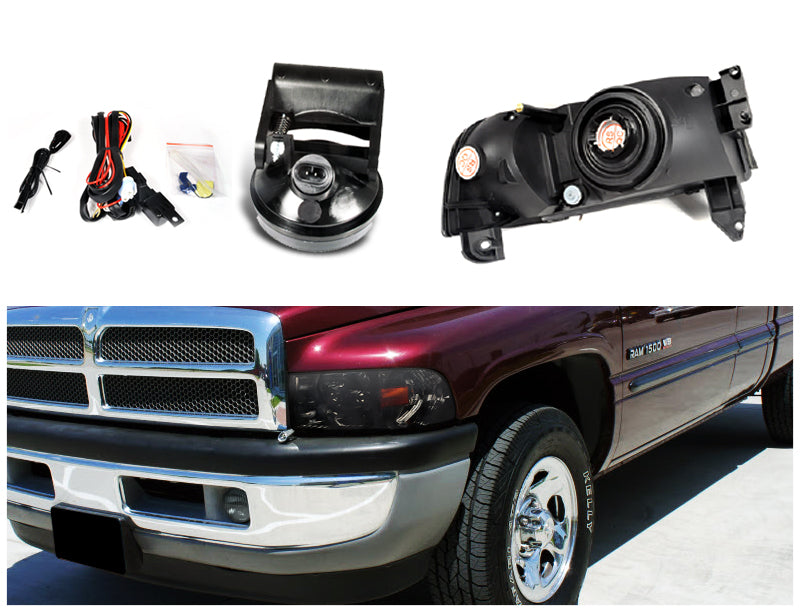 Coolstuffguru Compatible with DODGE RAM SMOKE CRYSTAL EURO HEAD LIGHT+BUMPER FOG LAMP