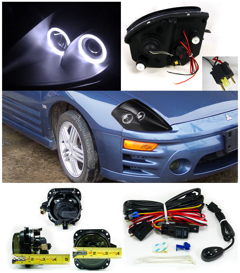 Coolstuffguru Compatible with Eclipse Black Dual Halo Projector Headlight+Smoke Bumper Fog Lamp Kit