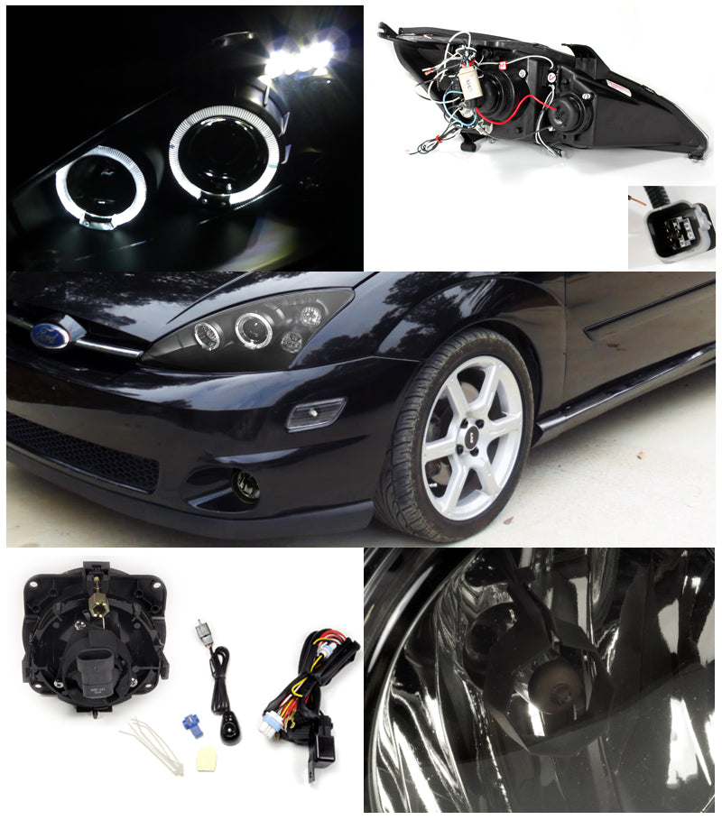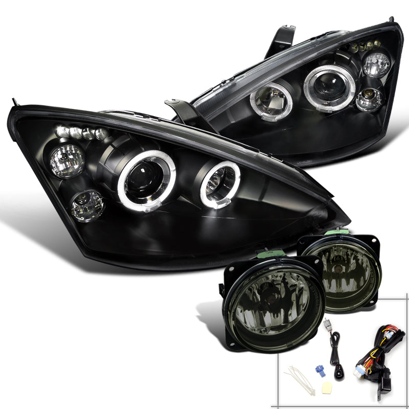 Coolstuffguru Compatible with FORD 00-04 FOCUS BLACK DUAL HALO LED PROJECTOR HEADLIGHT+SMOKE BUMPER FOG LA