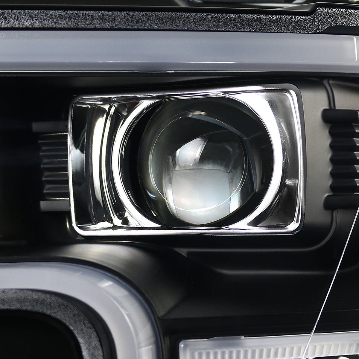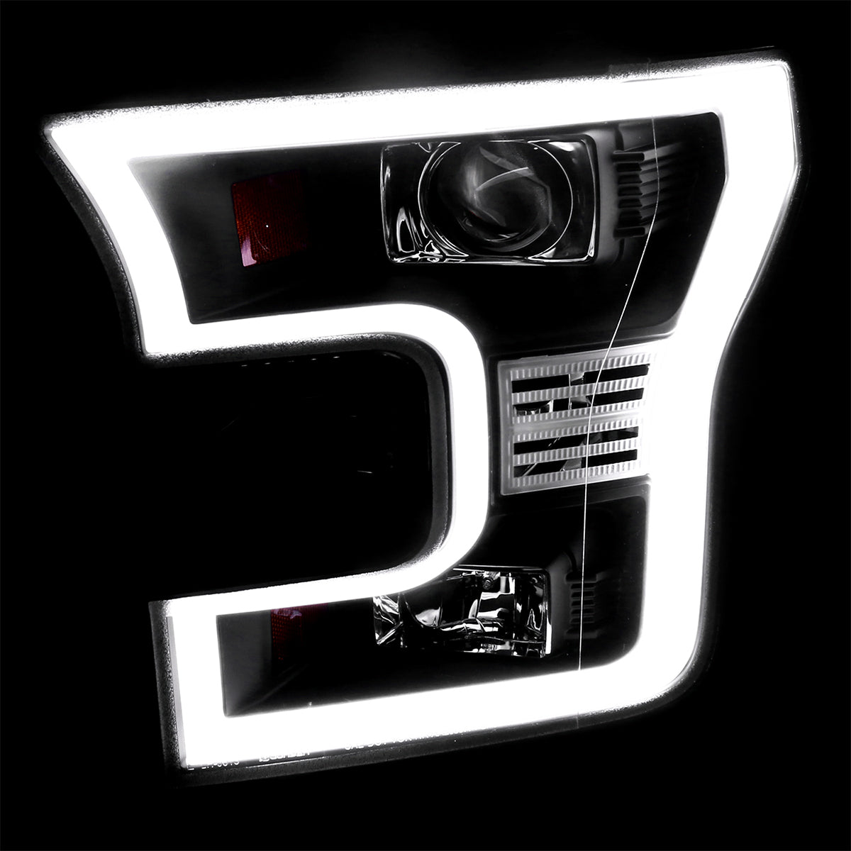 Coolstuffguru Compatible with Ford F150 Black LED Rim Projector Headlights+Clear SMD LED Bumper Fog Lamps