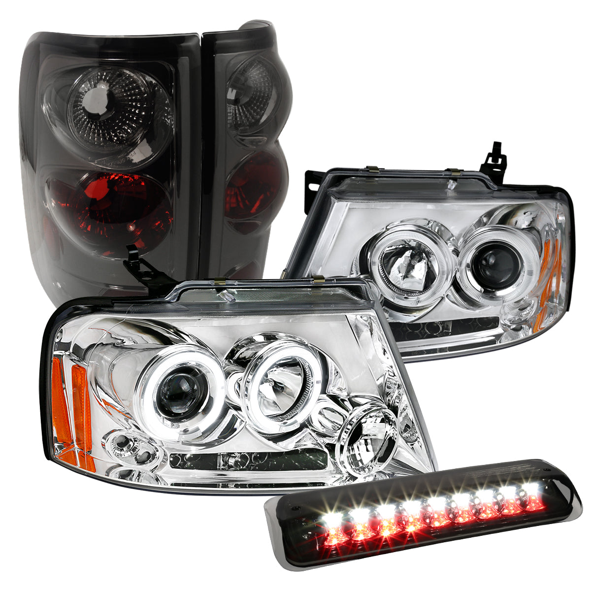 Coolstuffguru Compatible with Ford F150 Clear Halo Projector Headlights+Smoke Tail Lights+3rd Brake