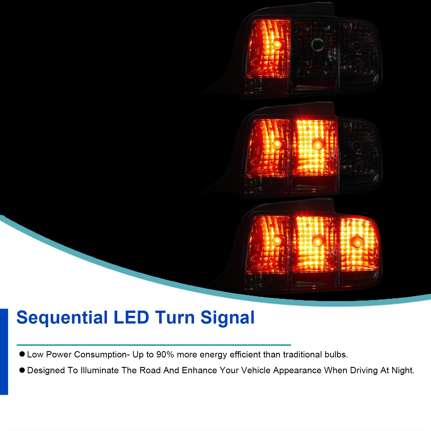 Coolstuffguru Compatible with Ford Mustang Chrome Headlights, Blk Bumper Lights, Smoked Sequential Tail La