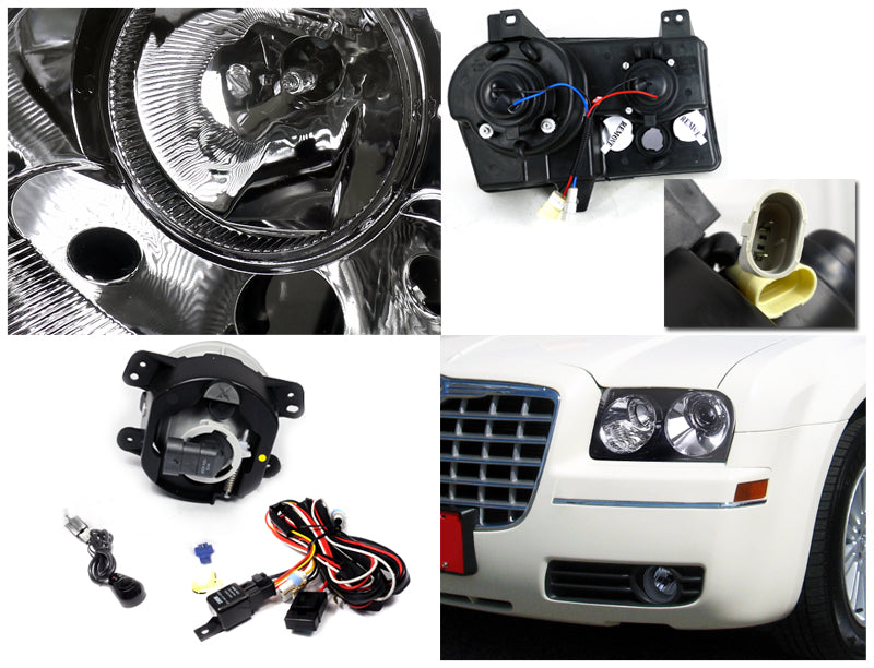 Coolstuffguru Compatible with GLOSSY BLACK 05-10 CHRYSLER 300 PROJECTOR HEADLIGHTS+BUMPER FOG LAMPS SMOKE