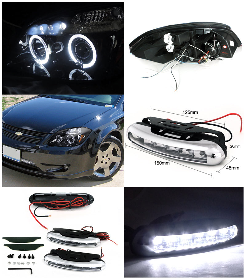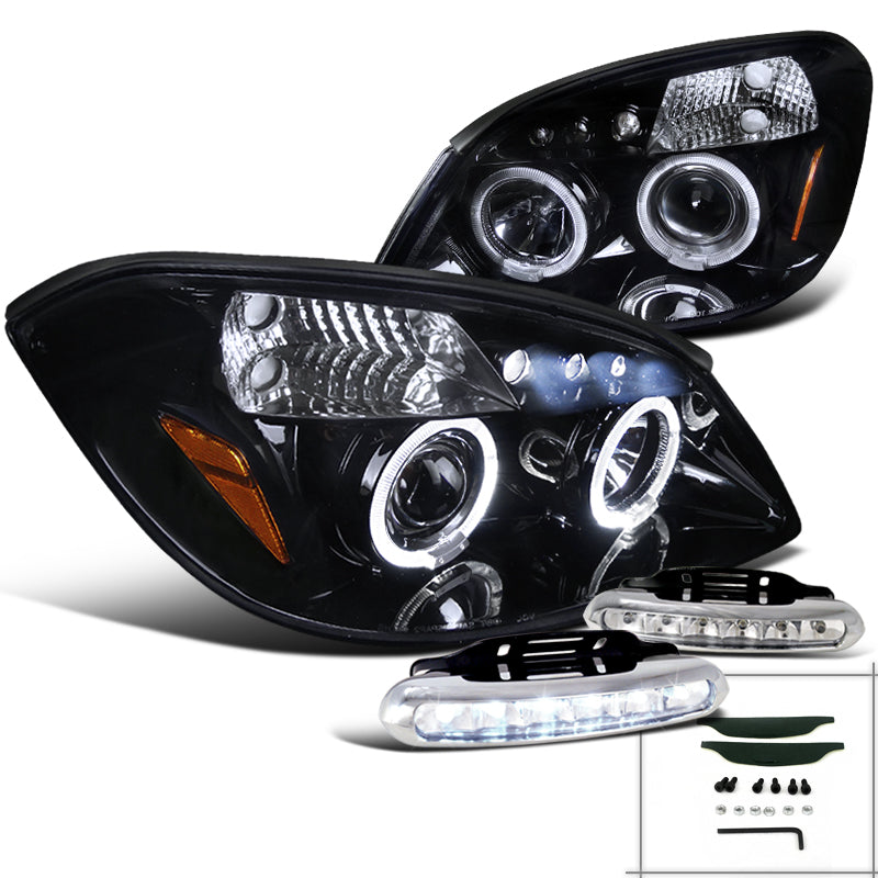 Coolstuffguru Compatible with Glossy Black Cobalt Halo Projector Headlights+Driving LED Fog Lamps Pair