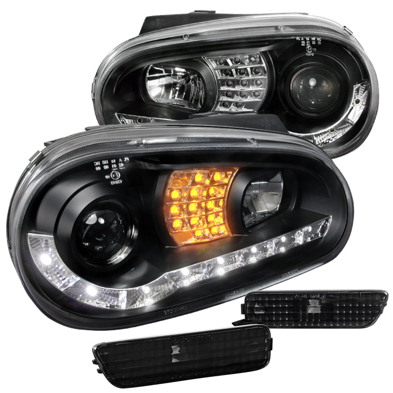 Coolstuffguru Compatible with Golf GTI Black LED DRL Projector Headlights+Signal+Bumper Side Marker