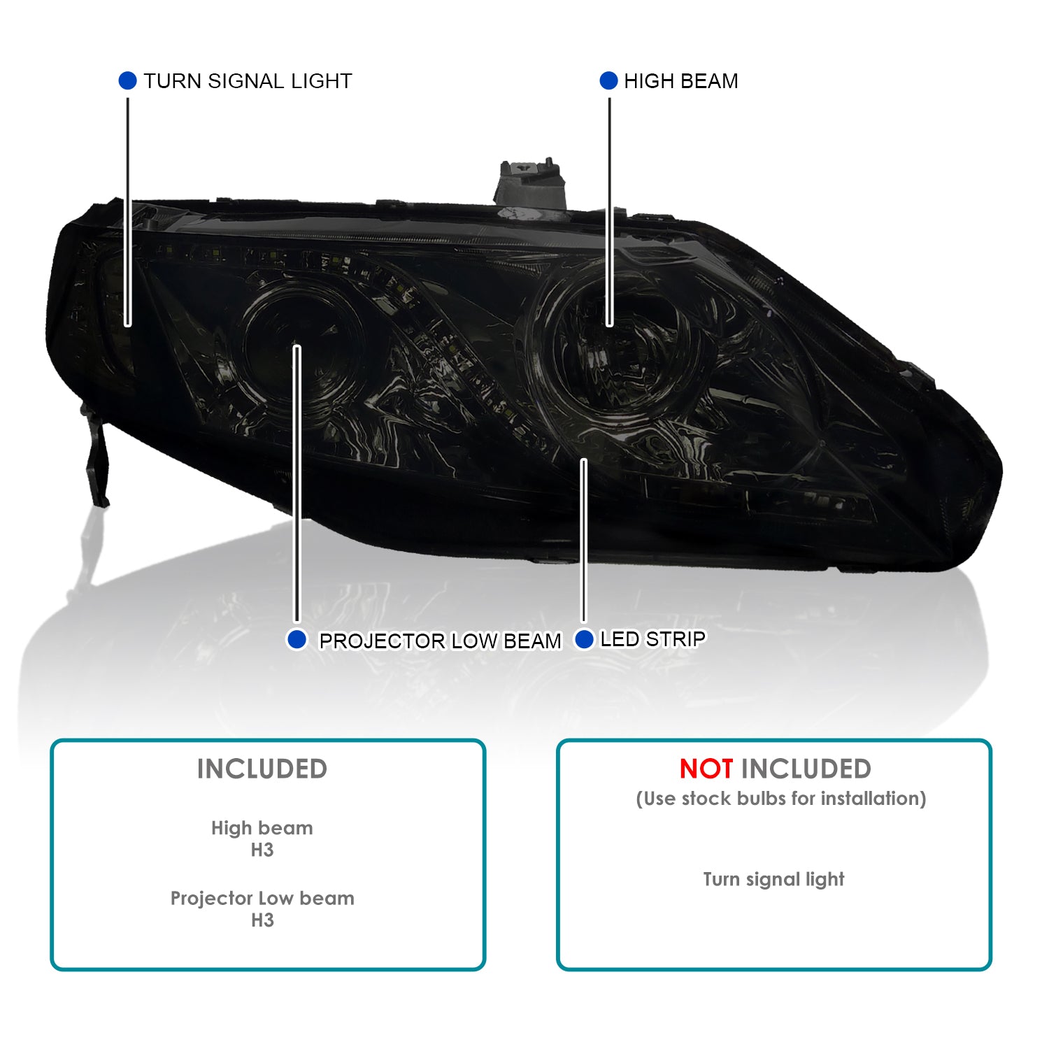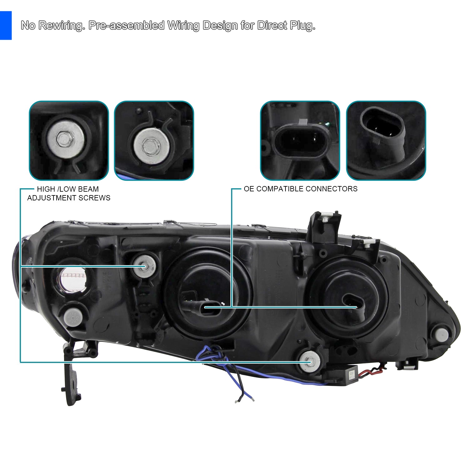 Coolstuffguru Compatible with Honda Civic 4Dr Tint R8 Led Projector Head Lights