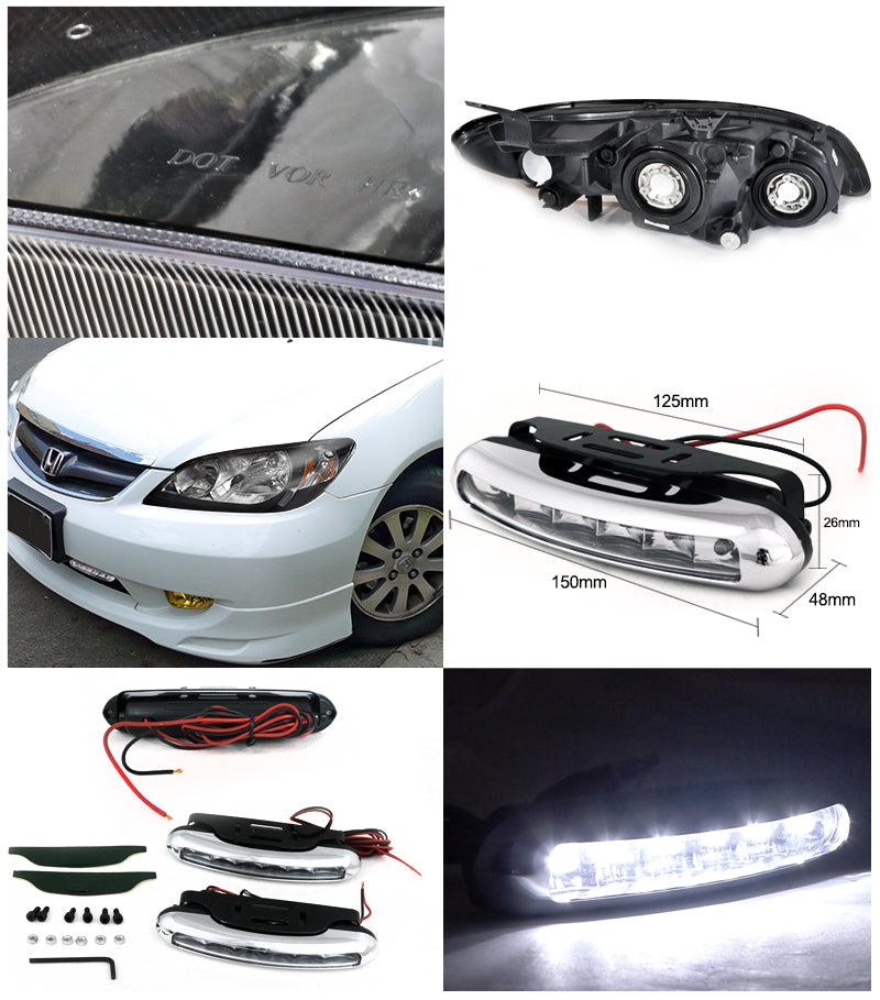 Coolstuffguru Compatible with Honda Civic Black Crystal Headlight+Corner Light+DRL 6-LED 6000K Bumper Fog