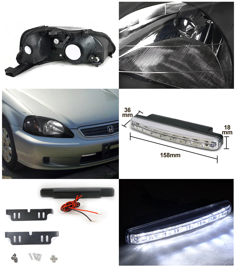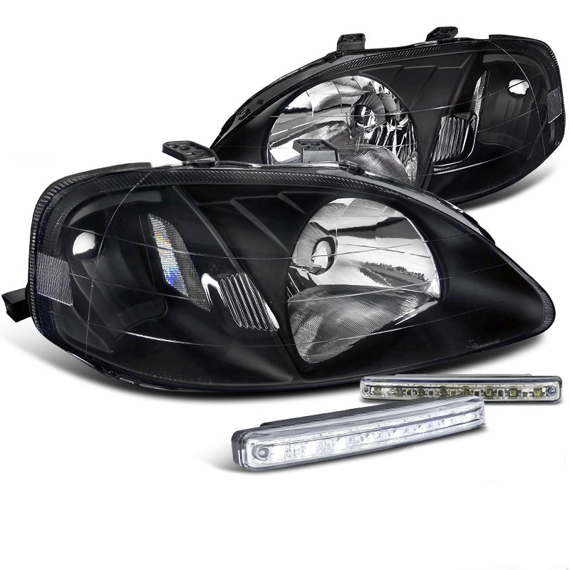 Coolstuffguru Compatible with Honda Civic Black Diamond Headlight+LED DRL Bumper Fog Light 4pc