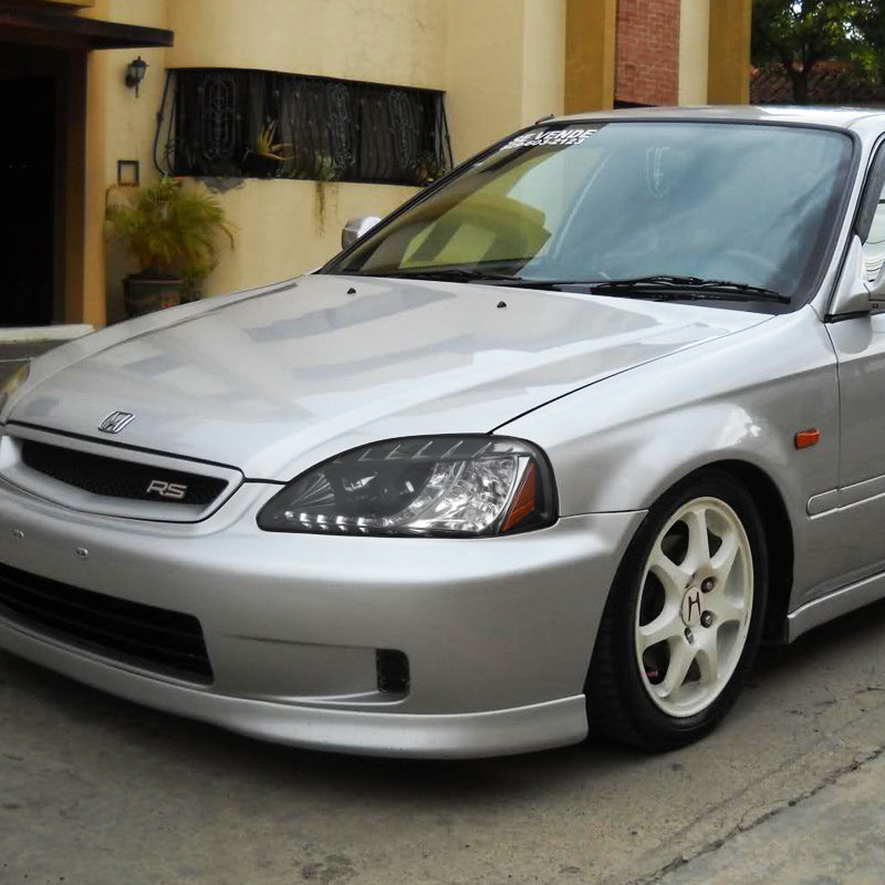 Brand new in original packaging. Exactly the same as shown in the picture! Comes with both headlights. H1 light bulbs included for HIGH/LOW beam. High quality glossy black housing smoke lens projector headlights w/ LED DRL lights. High end European R8 style LED strips. These lights are made by an OE approved and ISO certified manufacturer with the quality meet or exceed all OE standards. Do not come with installation instructions. Professional installation highly recommended. Fitment: Compatible with/Replacement For 99-00 Honda Civic 2/3/4dr