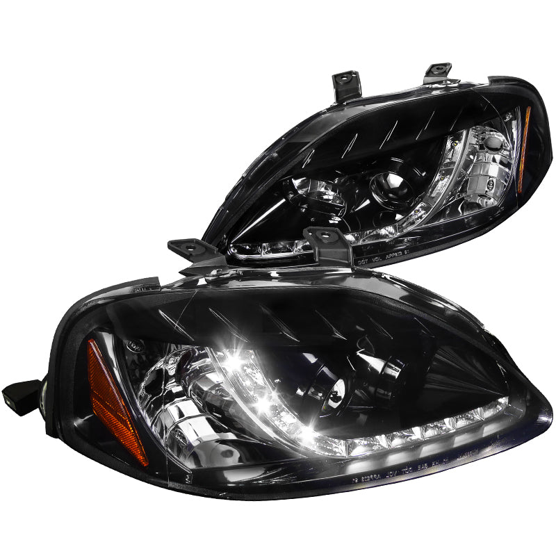 Coolstuffguru Compatible with Honda Civic Dual Halo Glossy Black R8 Led Style Projector Headlights