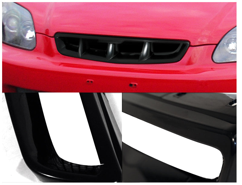 Brand new in original packaging. Exactly the same as shown in the picture! Made of high quality ABS plastic with shinny black look finish. Direct replacement which replaces the whole front grille. 100% Perfect fitment guarantee. Easy to install, no modifications needed ( No cutting or drilling ). Fitment: Compatible with/Replacement For 96-98 Honda Civic all models